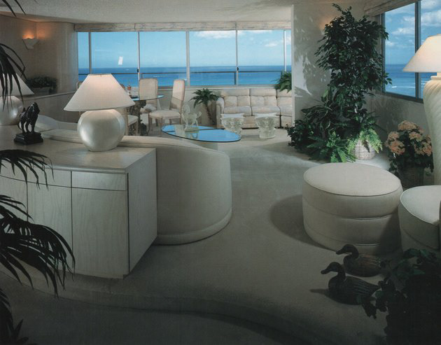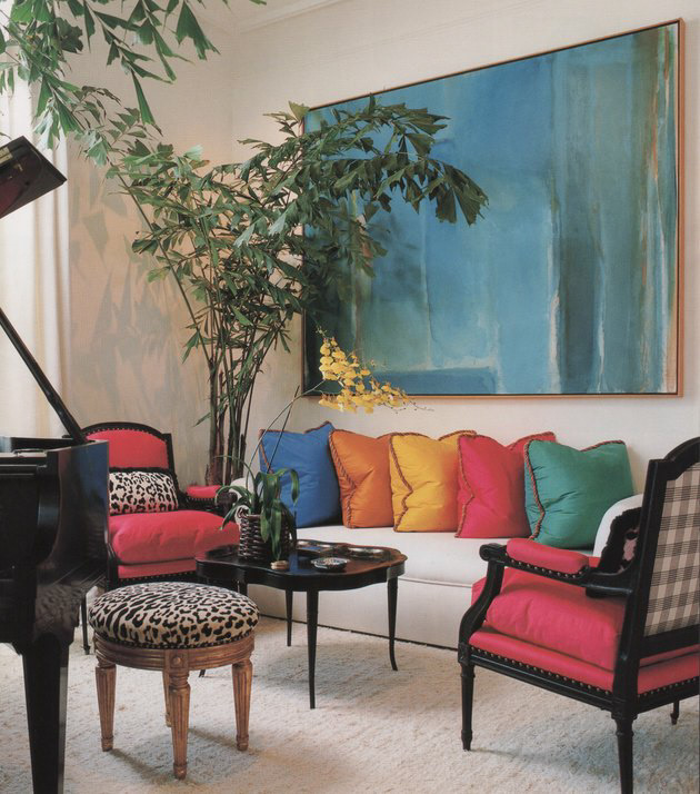 During the 1980s the ‘resort decor’ trend came on the scene sporting an ultra-light color scheme of barely-there peaches and pastel pinks. The 1990s took the decor trend and made it tropical, like this deep yet vibrant turquoise and magenta color pairing.