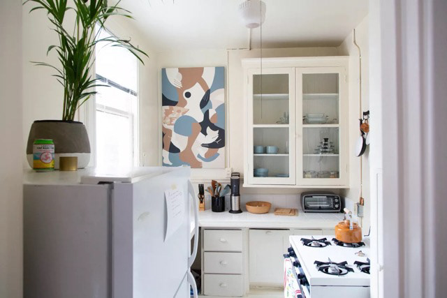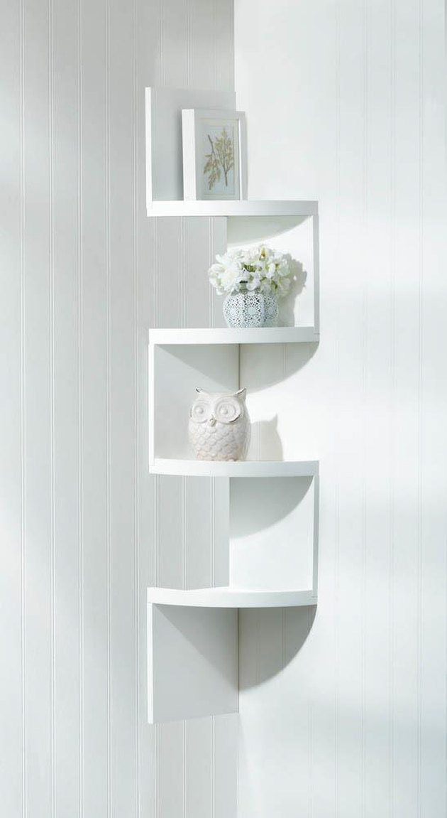 You need to use all of the space that you have when you’re decorating a studio apartment, including the corners. A set of corner shelves like this one is a great way to put items on display and keep surfaces (the number of which are limited in most studios) clear.