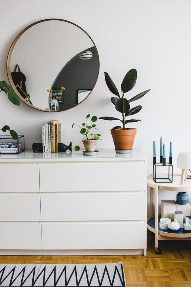 1. Pick up a round wall mirror.