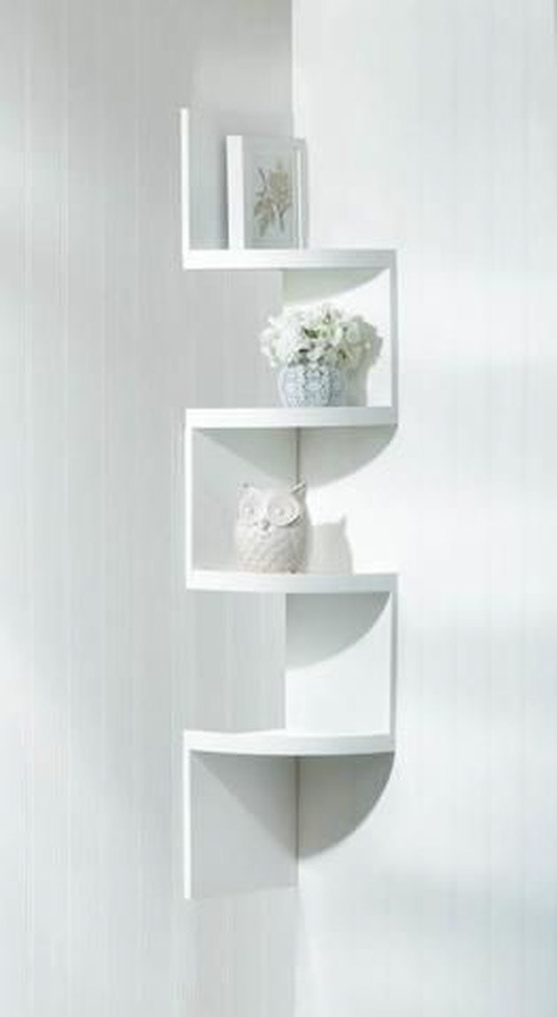 Use corner shelves to keep pictures and keepsakes on display, but out of the way.