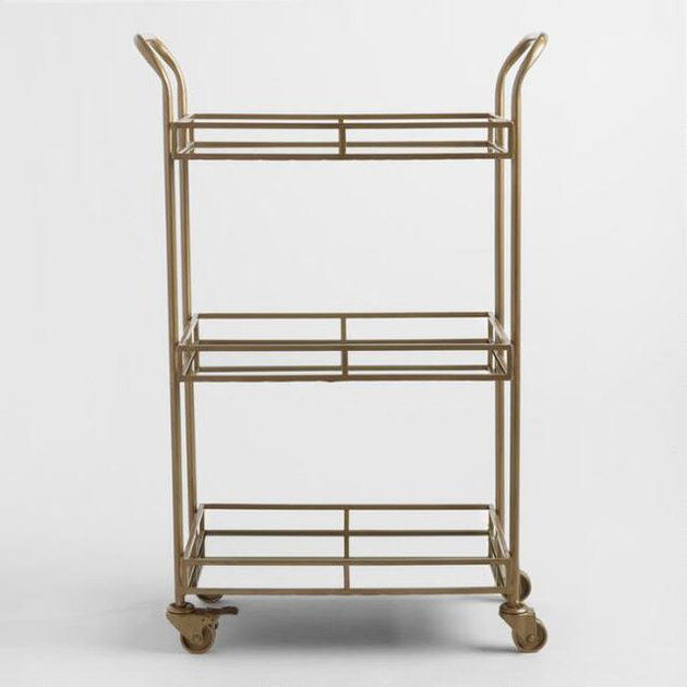 Not only are bar carts a space-efficient (and portable!) way to organize libations, they also come in a variety of styles. Plus, they’re versatile: Use them to serve your guests (and yourself) snacks and meals as well as drinks.