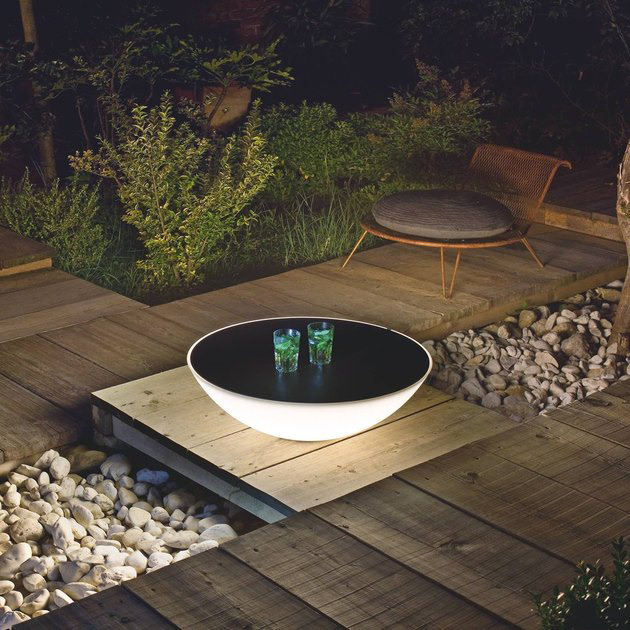 Outdoor floor lamps are surprisingly effective at exterior illumination. They’re the modern day version of the lamp post, and they bring a new kind of charm to exterior landscaping. The hemispherical shape of this contemporary solar powered floor lamp was inspired by an eclipse, making it a fitting outdoor fixture. ( YLighting, $1,575 )