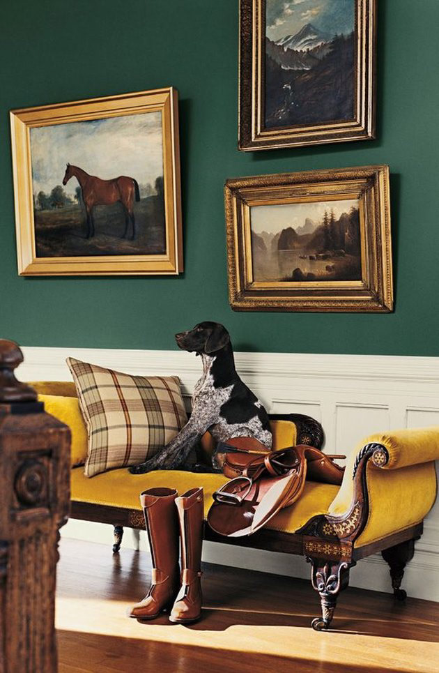 Because we are talking about the English countryside, after all, a decorative canine or equestrian accent is a must. Whether personal or purely for show, there are actually a lot of different ways to work our four-legged friends into our home decor. In the absence of a real-life furry friend, try an antique painting, vintage statuette, or an animal-print textile.