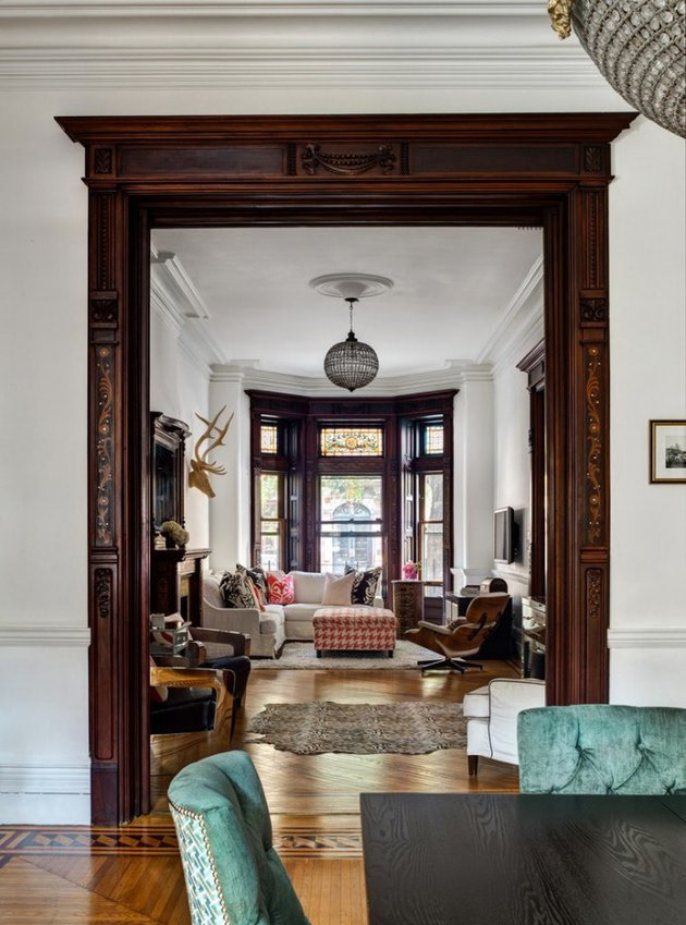 Victorian homes usually have substantially sized entrance halls; some continue straight through to the main house, while others are enclosed by a glass-paneled door in something akin to the original mudroom. High vaulted ceilings embellished with decorative designs make a grand first impression on visitors.