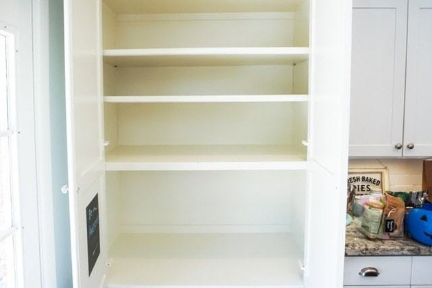 Once you’ve cleared and cleaned your shelves, divvy up the space. After you arrange the things that you use every day front-and-center, assign the rest of the shelves specific categories like “baking supplies,” “snacks,” and “canned foods.” With everything in its proper place, finding that bag of microwavable kettle corn will be a breeze.
