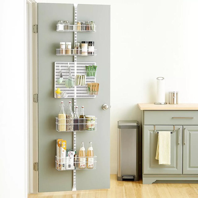 Ditch your food’s original packaging and use your own containers instead. Not only will the uniformity look gorgeous, but sealed canisters will do a better job of keeping your food fresh. Additionally, if you opt for clear containers, you can easily keep stock of everything so you know when you’re running low. Now you won’t end up with three boxes of confectioner’s sugar on your shelf.